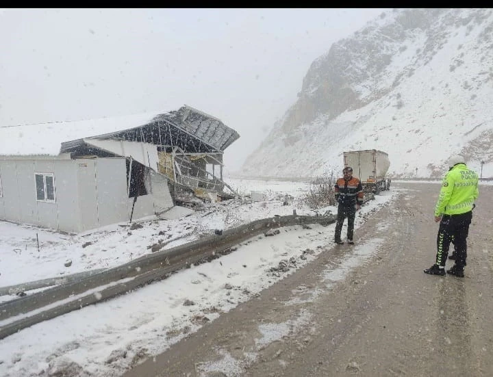 Bayburt-Erzurum kara yolunda tek taraflı trafik kazası meydana geldi. Mercedes marka tır, önce bariyerlere daha sonra da Bayburt Group İnşaat firmasına ait boş konteynere çarptı.