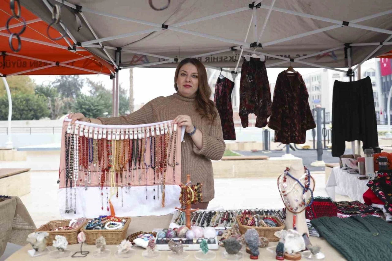 El emeği takı ürünleri satan Sinem Arslan da hemşire olduğunu ancak atanamadığı için bu alanda üretime yöneldiğini belirtti. Arslan, "Doğal taşlardan tespih, bileklik ve kolyeler yapıyorum. Belediyemizin sunduğu bu imkân sayesinde haftada bir gün de olsa eve katkı sağlayabiliyorum" ifadelerini kullandı. "Görünmeyen kadın emeği burada vitrine çıkıyor"
