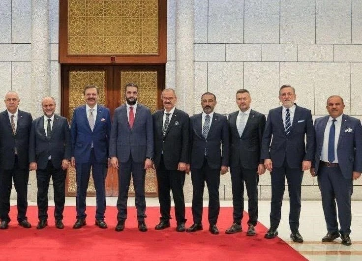 MTSO Başkanı Çakır, Türkiye ile Suriye arasındaki ticari ilişkilerin geliştirilmesi ve Suriye’nin yeniden inşası konularını görüşmek üzere, TOBB Başkanı Rifat Hisarcıklıoğlu başkanlığındaki heyetle birlikte Suriye Cumhurbaşkanı Ahmed eş-Şara’yı ziyaret etti.