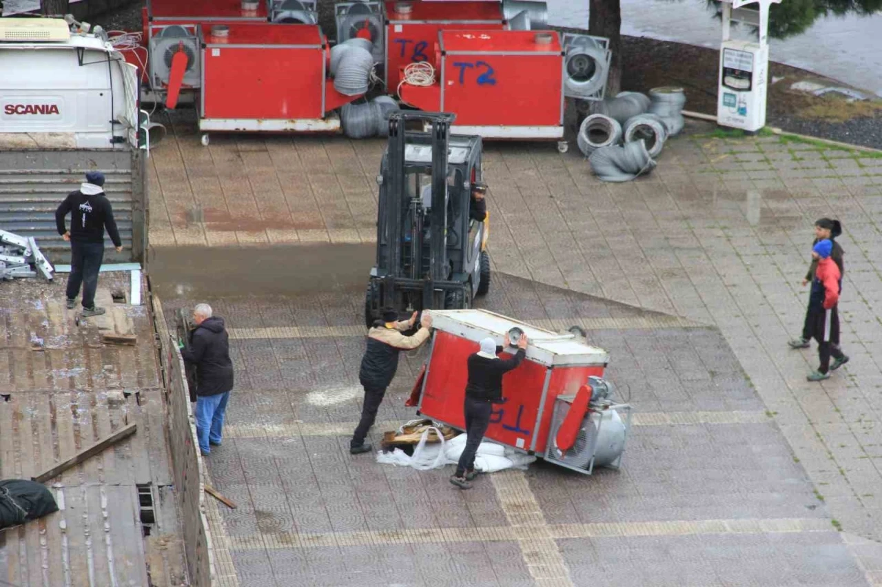 Olay, Cumhuriyet Meydanı’nda gerçekleştirilen yük indirme çalışmaları sırasında meydana geldi. Meydanda kurulması planlanan Ramazan çadırında kullanılmak üzere tırla alana getirilen havalandırma üniteleri için zabıta ekipleri tarafından güvenlik önlemleri alınarak alan bariyerlerle çevrildi. Tırla alana getirilen havalandırma üniteleri forklift yardımıyla indirilmeye başlandı. Tırda bulunan toplam 5 üniteden 4’ü sorunsuz şekilde indirilerek belirlenen noktaya yerleştirildi.