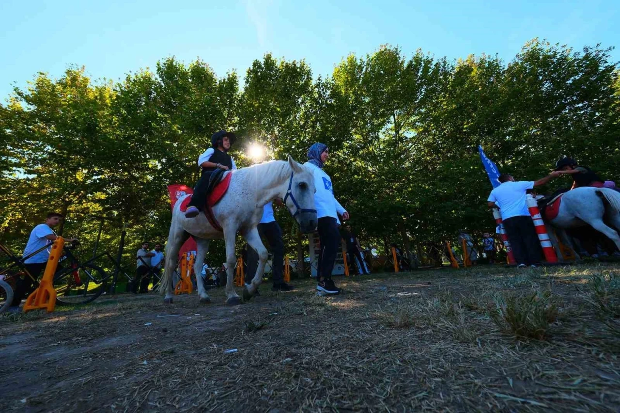 Sakarya Büyükşehir Belediyesi Kültür ve Sosyal İşler Dairesi Başkanlığı tarafından Millet Bahçesi’nde düzenlenen Sakarya Kültür Sanat Festivali, renkli ve keyifli etkinliklere ev sahipliği yapmaya devam ediyor. Festival çerçevesinde Pony Atlar Kulübü iş birliğiyle düzenlenen "Çocuklara Özel Eğlence ve At Biniciliği Eğitimi" etkinliği, minik katılımcılardan büyük ilgi gördü. Üç gün sürecek etkinlikte, çocuklar özel olarak hazırlanan alanda pony cinsi atlarla buluşma fırsatı yakaladı. Diğer at ırklarına göre daha küçük yapılarıyla dikkat çeken sevimli pony atlara binen çocukların heyecanı ve mutluluğu yüzlerinden okundu.
