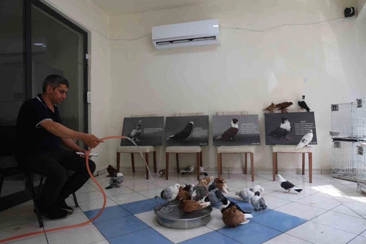 "Kendi odalarına gider, kuşlarına bakarlar. Herkesin kümesinde pervanesi olan, kliması olan, soğutucusu olan. Arkadaşlarımız bir şekilde güvercinlerin en güzel şekilde serinlemelerini sağlıyorlar. Günde en az bir yarım saat, 1 saat onların serinlemesi için elimizden geleni yapıyoruz. Yemleri, ilaçlarını yapıyoruz. Bir de bu güvercinlerimiz nesli tükenmek üzere olan türler. Güvercin otelini açma nedenlerimizden biri de nesli tükenmekte olan kuşların ırklarının yok olmaması içindir." "Bunlar Türkiye’nin yerli güvercinleridir"