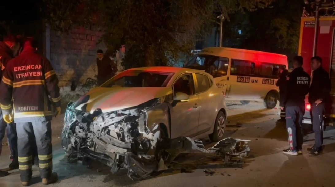 Erzincan İnönü Mahallesi’nde minibüs ile otomobil çarpıştı. Araçlardan biri ağaca çarparak durabildi.