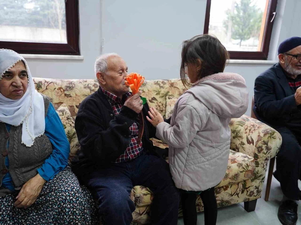 Düzce Belediyesi bünyesinde faaliyetlerini sürdüren Belka Kreş ve Gündüz Bakımevi öğrencileri Ertan Uçar Alzheimer Hastaları Gündüz Bakımevi’nden hizmet alan yaşlıları ziyaret etti. Kendi tasarladıkları çiçeklerle çınarların ellerini öpen minikler sohbet etmeyi de ihmal etmedi.