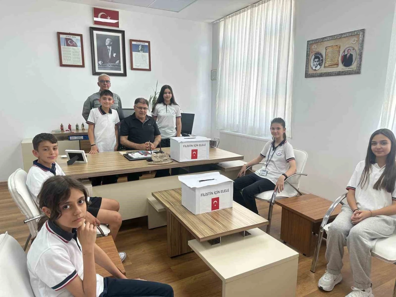 Aydın Gazipaşa Ortaokulu öğrencileri, ’Filistin için el ele’ sloganıyla topladıkları 43 bin 800 TL harçlığı Gazze’ye gönderdi. Aydın’ın Efeler ilçesinde bulunan Gazipaşa Ortaokulu öğrencileri, Gazze için yardım kampanyası gerçekleştirdi. Gazze’de okula gidemeyen akranlarına dikkat çeken minik yürekler, ’Filistin için el ele’ sloganıyla hazırladıkları bağış kutusu ile harçlıklarını biriktirdiler. Yardımlaşma ve merhamet bilincinin oluşturulması amacıyla gerçekleştirilen proje kapsamında öğrenciler, harçlıklarından yaptıkları bağışlarla toplam 43 bin 800 TL topladı. Öğrenciler, topladıkları harçlıkları daha sonra Filistinli akranlarına gönderilmesi için Kızılay’a teslim etti. Okul idaresi yönetiminde gerçekleştirilen programla harçlıklar, Kızılay’a teslim edilirken, oku yönetimi tarafından da yurtdışındaki ihtiyaç sahiplerine ulaştırılması için 2 kurban bağışlandı. Konu ile ilgili Gazipaşa Ortaokulu Müdürü Nadir Coşkun yaptığı açıklamada "Gazze’de yaşanan soykırıma karşı öğrencilerimiz bu sene okula gidemeyen Filistinli akranlarına yardımcı olmak için iki kumbaraya, harçlıklarını ve sadakalarını koyarak topladıkları 43 bin 800 TL’yi Türk Kızılayı vasıtasıyla ulaştırdılar. Okul idaremiz de yurt dışındaki ihtiyaç sahiplerine ulaştırmak için iki kurban bağışladılar. Öğrencilerimize şefkati, merhameti ve yardımlaşmayı öğretmek için Din Kültürü ve Ahlak Bilgisi öğretmenlerimize, bu projeye katkı yapan velilerimize ve öğrencilerimize teşekkür ederiz" ifadelerine yer verdi.