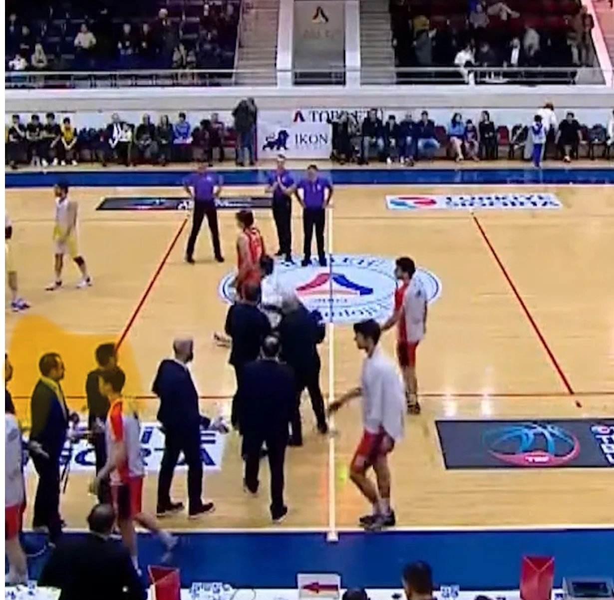 Türkiye Basketbol Ligi’nde Çağdaş Bodrum Spor ile sahasında karşılaşan MKE Ankaragücü’nde başantrenör Halil Üner, rakip oyuncu Burak Erol’a yumruk salladı.