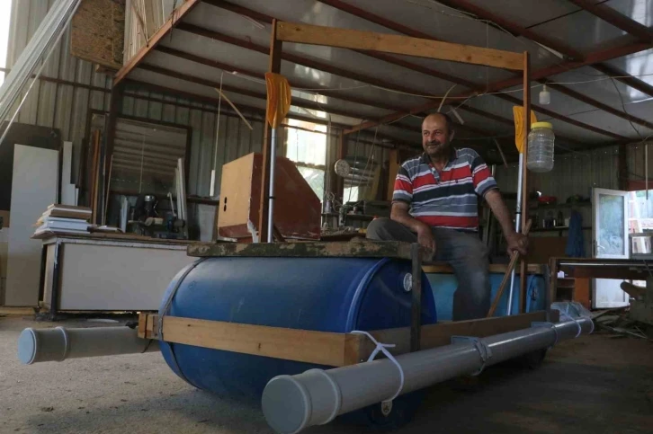 Hatay’da yaşayan mobilya ustası Hidayet Yeniocak, atık malzemelerden 10 günlük sürede yaptığı salı ’macera heveslisiyim’ diyerek Asi Nehri’yle buluşturdu.