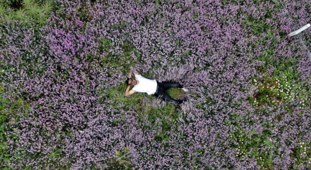 Görsel şölen oluşturan kara yonca tarlası kartpostallık görüntüler ortaya çıkarttı. Gören vatandaşlar anı ölümsüzleştirmek için kara yoncaların arasında bol bol hatıra fotoğraf çektirdi.