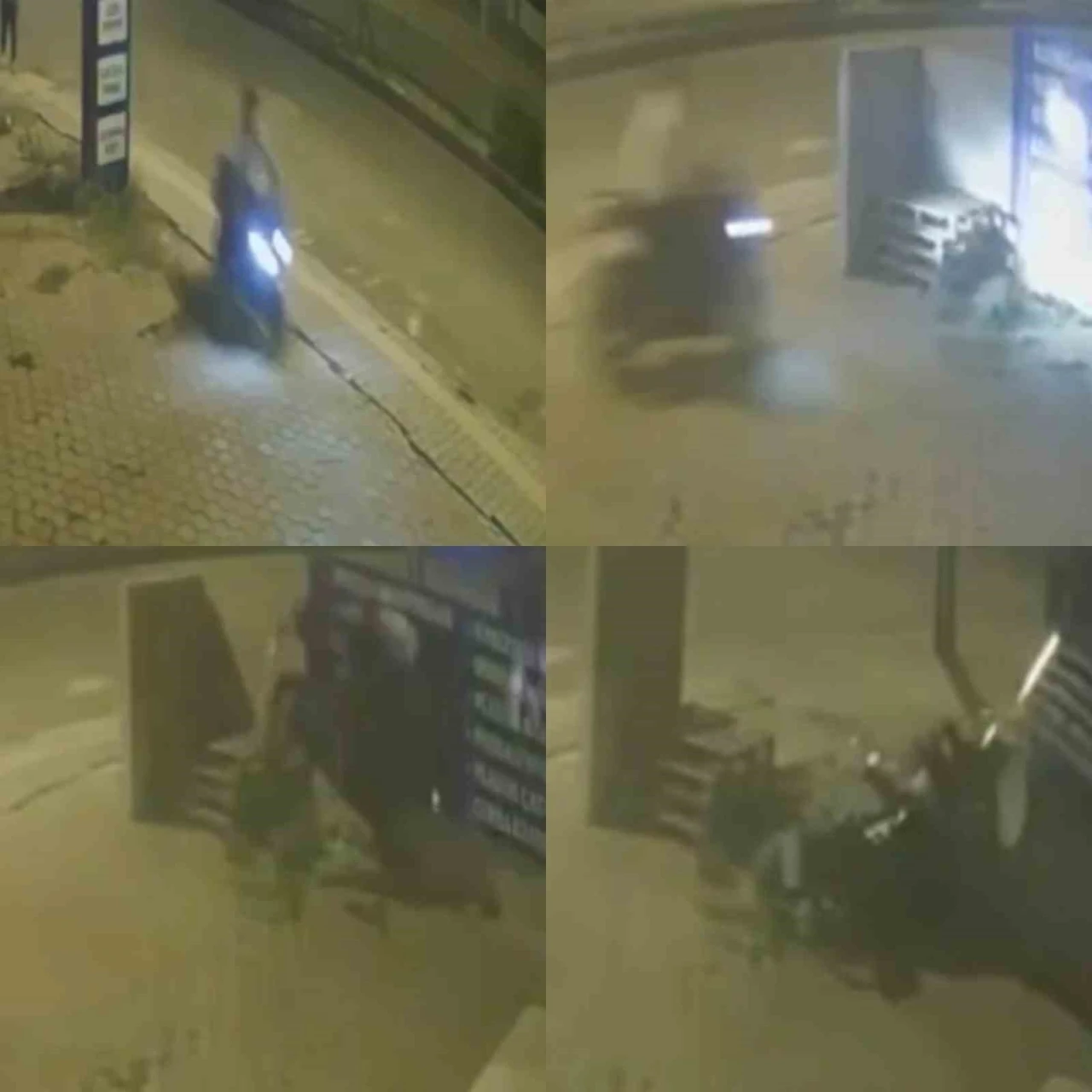 Mersin’in Tarsus ilçesinde motosiklet sürücüsü kaldırıma çıkarak levhaya çarpıp yaralandı.O anlar güvenlik kamerasına yansıdı.