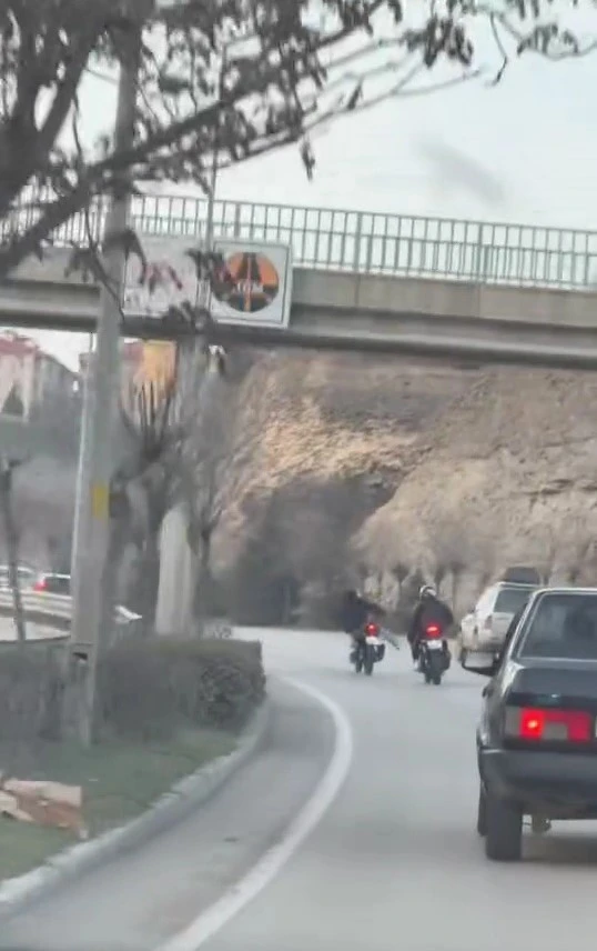 Karabük’te sürekli şerit değiştirip akrobatik hareketlerle yolculuk yapan motosikletlilerin tehlikeli yolculukları cep telefonu kamerasıyla görüntülendi.
