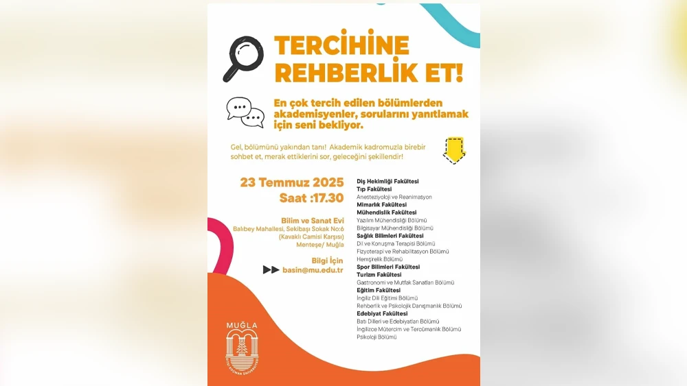 Muğla Sıtkı Koçman Üniversitesinden yapılan açıklamada, "En çok tercih edilen bölümlerden akademisyenlerin katılımıyla gerçekleşecek etkinlikte, adaylar akademik kadromuz ile birebir sohbet ederek bölümleri yakından tanıma fırsatı bulacak. Aday öğrencilerin sorularını doğrudan akademisyenlere yöneltebilecekleri bu buluşma, kariyer planlamalarında önemli bir rehberlik sunmayı hedefliyor" denildi.