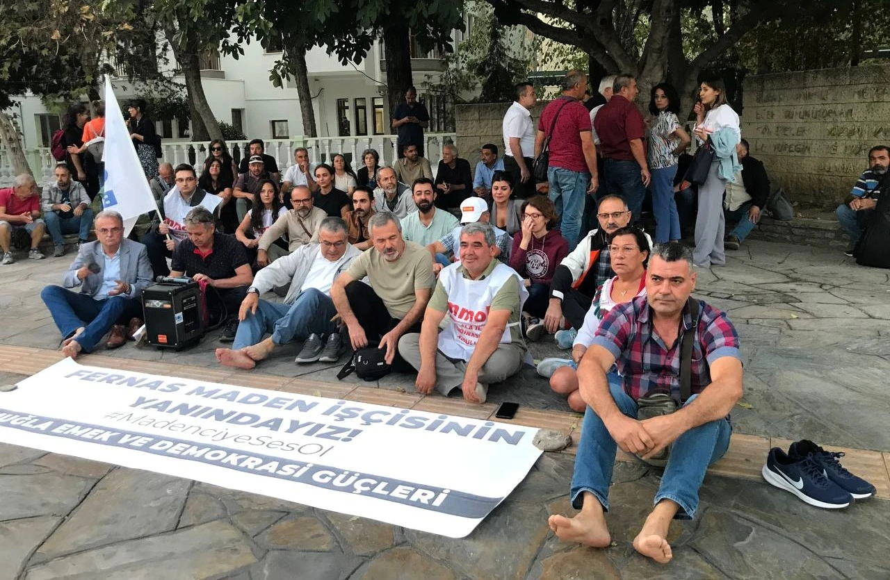 Muğla Sınırsızlık Meydanı’nda, Muğla Demokrasi Güçleri, Fernas işçileriyle dayanışmak ve göz altıları protesto etmek amacıyla düzenlenen eylemde “Ölmek var, dönmek yok” denilerek destek verildi. Ayakları çıplak ve karınları aç bir şekilde üç gündür Kurtuluş Parkı’nda direnen Fernas maden işçilerinin sesi olmak için bir araya gelen kalabalık, işçi sağlığı ve güvenliği önlemlerinin alınmadığı koşullarda çalışmaya zorlanan işçilerin haklarını savundu.