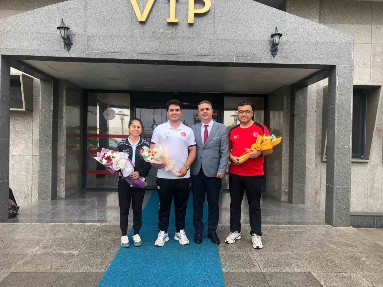 Dünya Şampiyonu Emircan Haney ve Antrenörü Dr. Ejder Sözen yurda dönüşünde Milas-Bodrum Havalimanı’nda büyük bir coşkuyla karşılandı. Emircan Haney, Çin’in Nanjing kentinde düzenlenen Makaralı Yay Dünya Kupası Finalleri’nde altın madalyaya uzanarak Türkiye’ye ikinci kez dünya kupası sevinci yaşattı. Çin’in Nanjing kentinde gerçekleşen Dünya Kupası Finalleri, bu yıl nefes kesen mücadelelere sahne oldu. Türk okçuluğunun yıldızı Emircan Haney, zorlu hava şartlarına ve dünyanın en iyi sporcularına rağmen sergilediği üstün performansla tarih yazdı. Perşembe günü başlayan mücadelede Haney, çeyrek finalde mevcut dünya şampiyonu Nicolas Girard’ı 147-146’lık skorla mağlup ederek büyük bir özgüven kazandı. Ardından yarı finalde dört kez Dünya Kupası şampiyonu olan Hollandalı Mike "Mister Perfect" Schloesser ile karşılaştı. 147-147 biten mücadelede nefesleri kesen "shoot-off" sonucunda Haney bir kez daha adını finale yazdırdı. Finalde karşısına bu kez yeni dünya bir numarası Mathias Fullerton çıktı. Ancak Emircan Haney, serin ve yağışlı havaya aldırmadan 149-148’lik müthiş performansıyla altın madalyaya uzandı. Böylece 2015’te Demir Elmaağaçlı’nın ardından Türkiye’nin ikinci makaralı yay Dünya Kupası şampiyonu unvanını kazandı. Zorlu mücadele boyunca saatte 16 kilometreye ulaşan rüzgâr, aralıksız yağmur ve düşük sıcaklık, Haney’in başarısını daha da anlamlı hale getirdi. Muğla Gençlik ve Spor İl Müdürlüğü yayımladığı mesajda şu ifadelere yer verdi: "Dünya sahnesinde bayrağımızı bir kez daha gururla dalgalandıran milli sporcumuz Emircan Haney’i, antrenörü Dr. Ejder Sözen’i ve emeği geçen herkesi yürekten kutluyoruz. Bu büyük zafer, Muğla’nın, Yatağan’ın ve ülkemizin spor alanındaki yükselen başarısının gurur verici bir göstergesidir. Elde edilen bu tarihi başarı, genç sporcularımıza da ilham olacaktır" Milli takımın disiplinli çalışması, güçlü teknik ekibi ve genç yetenekleriyle, Türkiye artık okçulukta dünyanın en güçlü ülkeleri arasında yer alırken karşılamaya, Muğla Gençlik ve Spor İl Müdürü Kazım Açıkbaş, Milas Gençlik ve Spor İlçe Müdürü Durmuş Uslu, Yatağan Gençlik ve Spor İlçe Müdürü Kamuran Adalı, Spor Şube Müdürü Doğukan Doğan, Antrenör Dr. Ejder Sözen ve milli sporcu Hazal Burun da katıldı.