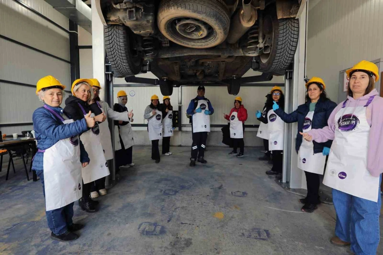 Kadınların teknik beceriler kazanarak günlük yaşamlarında daha bağımsız olmalarını destekleyen Muğla Büyükşehir Belediyesi, ilk etapta temel el aletleri kullanımı ve tamirat konularında eğitim verdiği kadınlara, şimdi de araç bakımı üzerine uygulamalı eğitimler sunuyor.