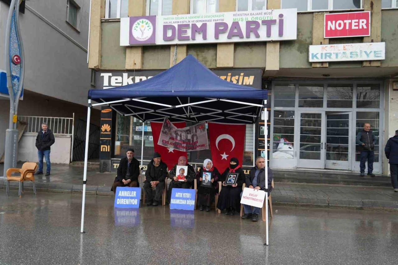 Muş’ta çocukları terör örgütü PKK tarafından kaçırılan aileler, DEM Parti İl Başkanlığı önündeki eylemlerine devam ediyor.