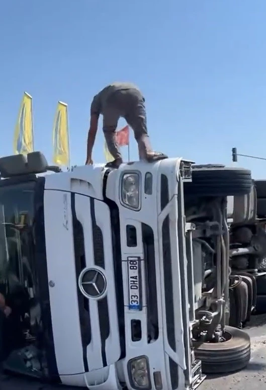 Mersin’in Tarsus ilçesinde muz yüklü tır devrildi. Kazada sürücü hafif yaralandı.