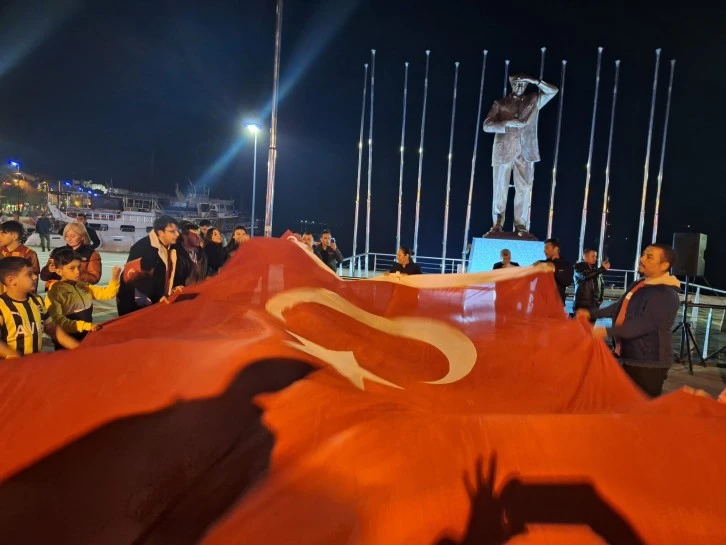 Marmaris'te Fenerbahçe ve Galatasaray taraftarları, Atatürk Heykeli önünde bir araya gelerek kulüplerinin aldığı karara destek verdiler. Suudi Arabistan'da oynanacak Süper Kupa maçında Atatürk tişörtleriyle çıkma izni verilmemesine tepki gösteren Marmarisli taraftarlar, birlik ve beraberlik içinde olduklarını gösterdiler.