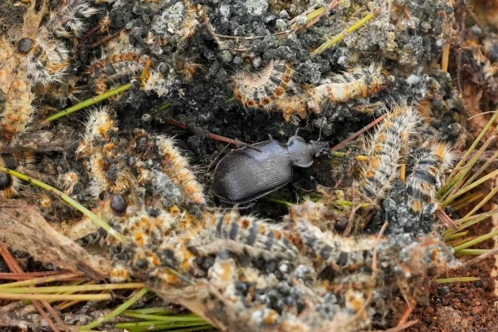 Orman Genel Müdürlüğü laboratuarında üretilen ve çam kese böceklerinin kabusu olarak nitelendirilen terminatör böcekler (Calosoma sycophanta), çam ağaçları için cansiperane mücadele ediyor.