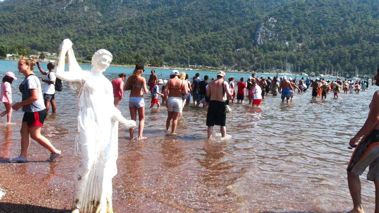 Aslında kumda yürüyüşe başlamadan körfezin sağ tarafında bulunan içinde çok sayıda tavşanın yaşadığı küçük adanın üstündeki kalıntıların Bybassios antik kentine ait olduğu sanılıyor.