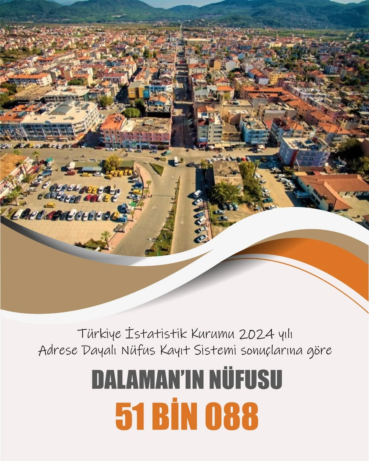 Türkiye İstatistik Kurumu 2024 yılı Adrese Dayalı Nüfus Kayıt Sistemi sonuçlarını açıklarken, Muğla’nın nüfusu 1 milyon 081 bin 867, Dalaman’ın nüfusu 51 bin 088 oldu. Türk vatandaşları ve Türkiye'de yaşayan yabancıların yerleşim yeri ve diğer adres bilgilerinin elektronik ortamda merkezi bir yapı içerisinde güncel olarak tutulması için oluşturulan Adrese Dayalı Nüfus Kayıt Sistemi 2024 yılı sonuçları açıklandı. Sonuçlara göre Muğla’nın nüfusu 15 bin 131 kişi artarak 1 milyon 081 bin 867, Dalaman’ın nüfusu 2 bin 44 kişi artarak 51 bin 088 oldu.