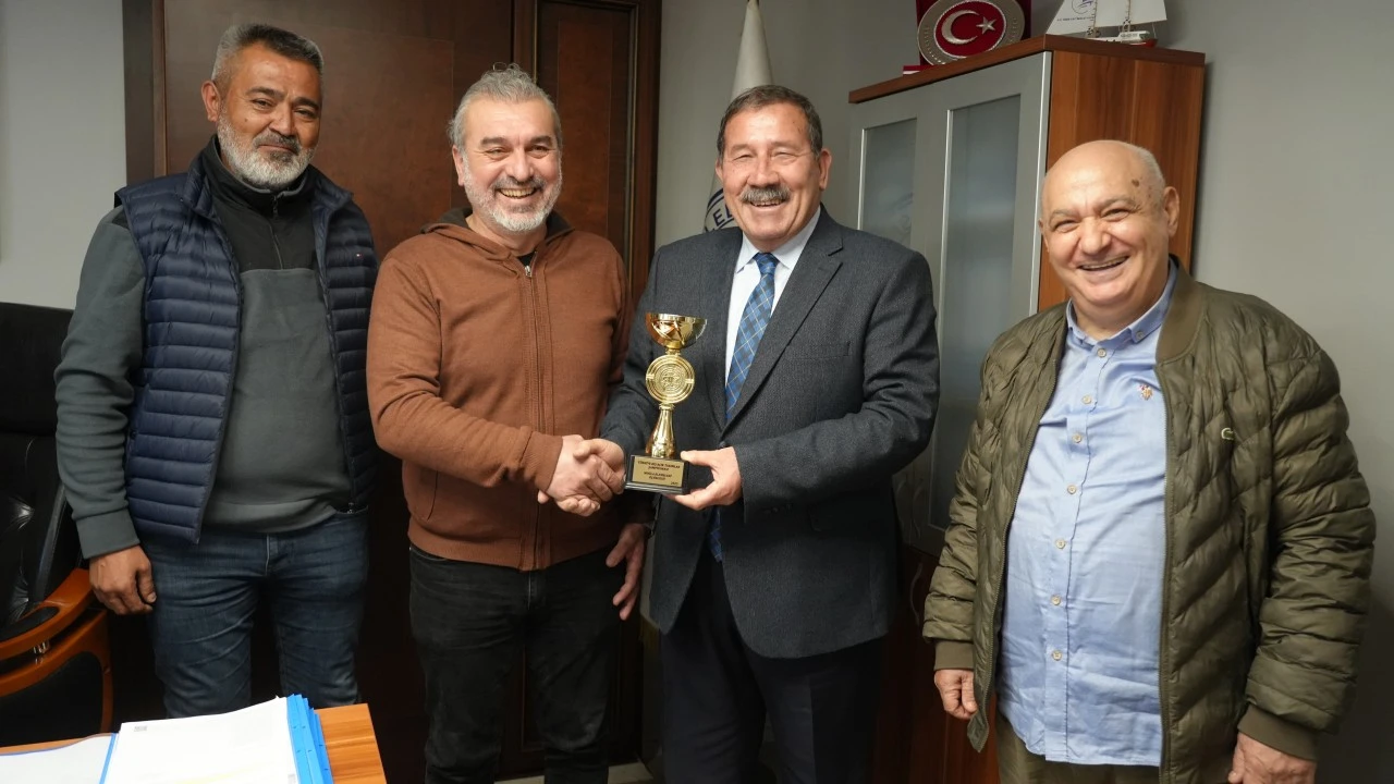 Milas Belediye Spor Briç Takımı oyuncuları Süleyman Koç ve Nevzat Aydoğdu üçüncülük kupası ile birlikte Milas Belediye ve Milas Belediye Spor Kulüp Başkanı Fevzi Topuz’u makamında ziyaret etti. Turnuvaya hazırlık süreçleri ve elde edilen üçüncülük hakkında Başkan Topuz’a bilgilendirme yapan sporcular Bursa’da yapılacak Türkiye finalinde Milas’ı en iyi şekilde temsil edeceklerini ifade ederek desteklerinden dolayı Milas Belediye ve Milas Belediye Spor Kulüp Başkanı Fevzi Topuz’a teşekkür etti.