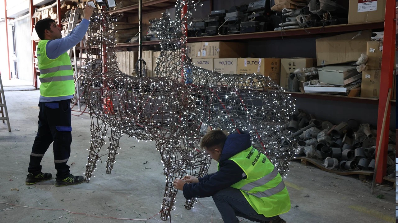 Belediyenin Makine Araç Parkı’nda günler öncesinden çalışmaya başlayan ustalar, 2026 yazısı, kardan adamlar, geyikler ve hediye paketleri gibi yılbaşı figürlerini özenle üretiyor. Titizlikle hazırlanan dekorlar, ilçe genelinde kurulacak ışıklandırma düzeniyle birleşerek Marmaris’e yeniden büyüleyici bir atmosfer kazandıracak.