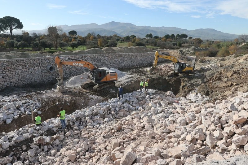 Büyükşehir Belediyesi çalışmalar kapsamında; Hacıbayramlar Mahallesi’nde bulunan Delice Çayı üzerinde toplam 400 metre uzunluğundaki taş istinat duvarı yapımının 300 metrelik bölümünü tamamladı.