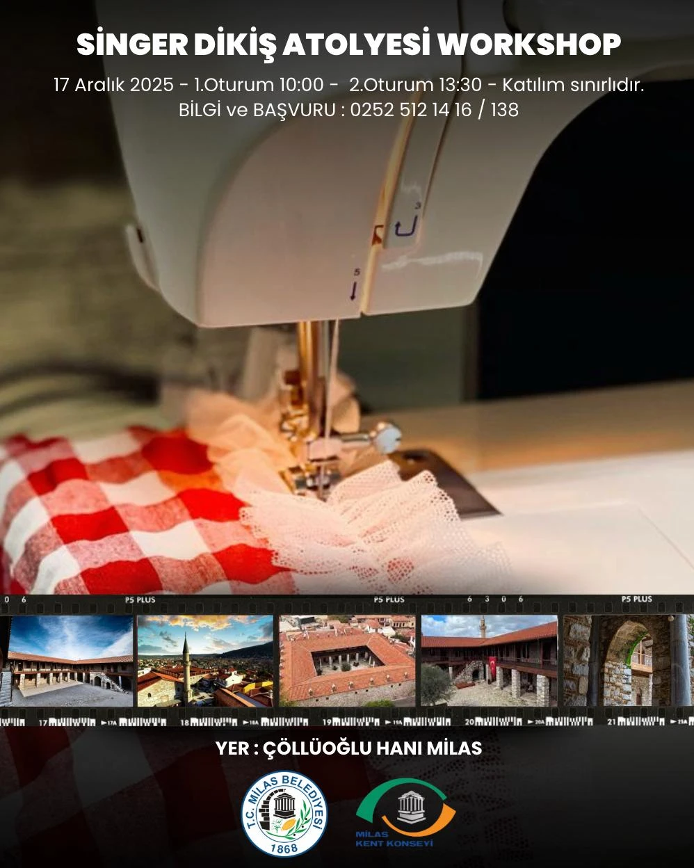 Kumaşların kadınların elinde hayat bulacağı Singer Dikiş Atölyesi Workshop etkinliği 17 Aralık 2025 Çarşamba günü yapılacak. İlk oturumun 10.00 ikinci oturumun ise 13.30’da başlayacağı etkinliğe katılmak isteyen kadınlar bilgi ve başvuru için (0252) 512 14 16 numaralı telefonu arayıp 138 dahili numarayı tuşlayabilecek.