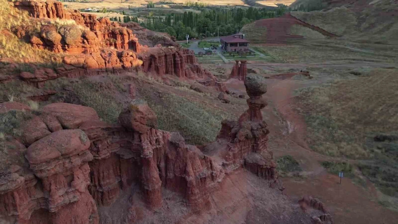 Erzurum’un Narman ilçesinde bulunan ve halk arasında "Kırmızı Periler Diyarı" olarak bilinen Narman Peri Bacaları, milyonlarca yıllık oluşumlarıyla ziyaretçilerini büyülüyor. Kırmızı renkli tüf kayalarının rüzgâr ve yağmur etkisiyle şekillenmesi sonucu ortaya çıkan bu doğal güzellikler, Kapadokya’daki peri bacalarına benzerliğiyle dikkat çekiyor.