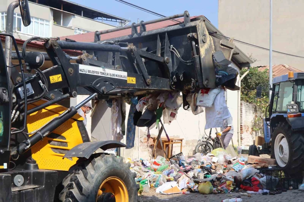 Nazilli Belediyesi Temizlik İşleri Müdürlüğü ekipleri, Zafer Mahallesi’nde yaklaşık 40 gün önce temizledikleri çöp evi, gelen şikayetler üzerine tekrar temizledi. Sabah erken saatlerde çalışmalara başlayan ekipler, sıcak hava şartları ve kötü koku nedeniyle çift maske takarak girdikleri evi temizlerken zor anlar yaşadı. Yaklaşık 4 kamyon dolusu çöpü tek tek temizleyen belediye ekipleri, temizlik çalışmalarının tamamlanmasının ardından evi dezenfekte etti.