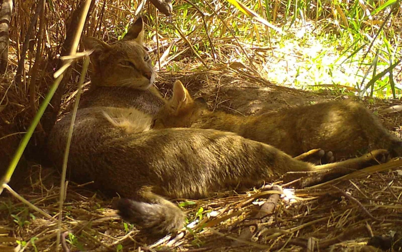 Kırıkkale kırsalında fotokapanlara yakalanan nesli tehlike altındaki saz kedisi, yavrularıyla birlikte görüntülendi.