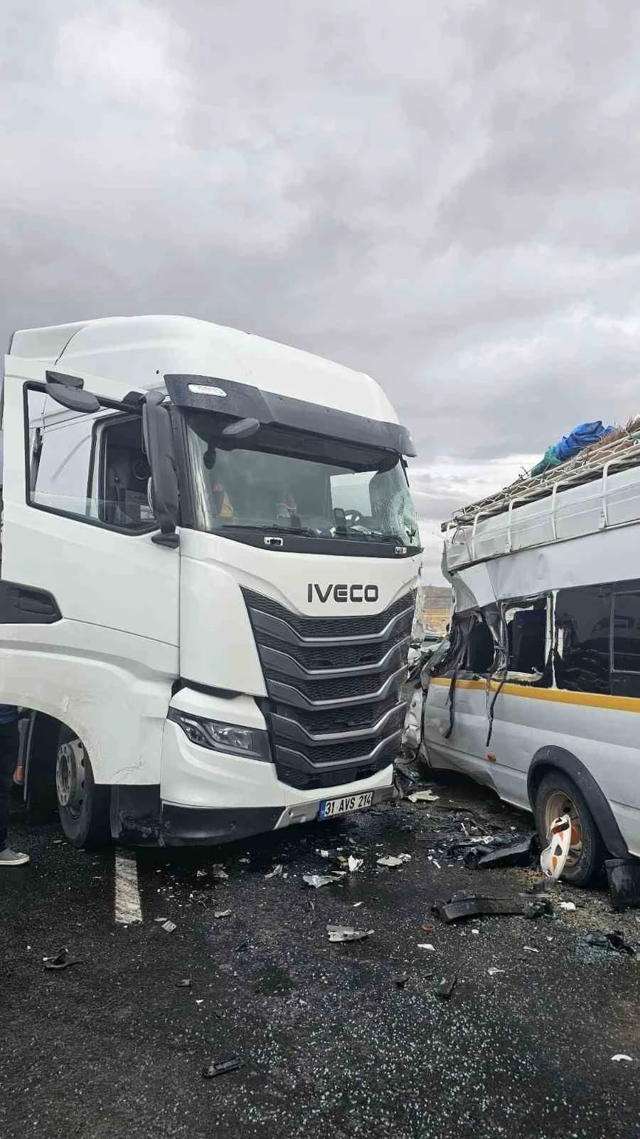 Nevşehir’de tır ile mevsimlik işçileri taşıyan minibüsün çarpışması sonucu 9 kişi yaralandı.