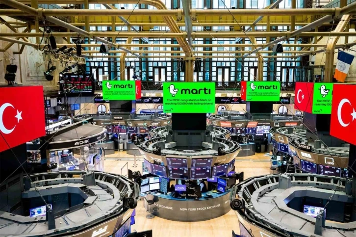 New York Borsası, 150 bin sürücüye ulaşan Martı’yı 232 yıllık binasına Türk bayrağı asarak kutladı. Yerli ulaşım uygulaması Martı, teknoloji ve inovasyon alanında Türkiye’yi dünyada temsil etmeye devam ediyor. New York Borsası, 150 bin sürücüye ulaşan Martı’yı 232 yıllık binasına Türk bayrağı asarak kutladı. Yüzde 100 yerli bir başarı hikayesi
