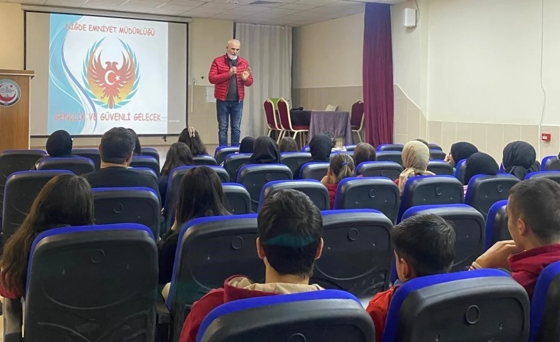 Niğde İl Emniyet Müdürlüğü Terörle Mücadele Şube Müdürlüğü önleyici ve bilgilendirici faaliyetler kapsamında 4-19 Kasım tarihleri arasında düzenlenen lise öğrencilerine yönelik terör örgütlerinden uzak durulması hakkında bilgilendirilme çalışması yapıldı. ’Gençlik ve Güvenli Gelecek 12’ konulu proje kapsamında; Şehit Kemal Tosun Anadolu İmam Hatip Lisesi, Necmettin Erbakan Kız Anadolu İmam Hatip Lisesi, Mimar Sinan Mesleki ve Teknik Anadolu Lisesi, Fatih Anadolu Lisesi, Remide ve Yılmaz Atabek Anadolu Lisesi, Hacı Zekiye Arslan Anadolu Lisesi ve Niğde Atatürk Anadolu Liselerinde eğitim gören 2 bin 100 öğrenci bilgilendirilirken ekipler tarafından öğrencilere kalemlik hediye edildi.