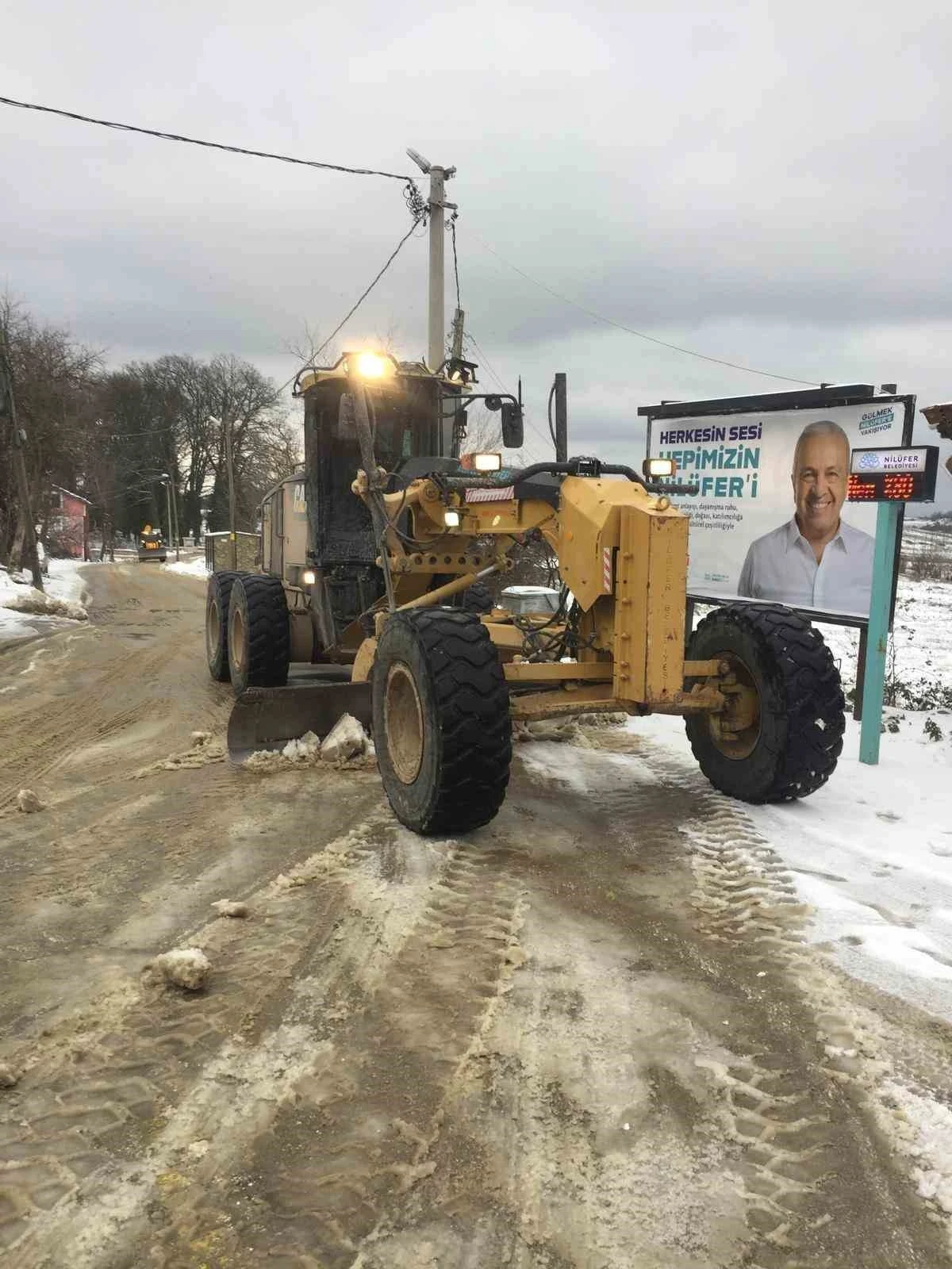 Nilüfer Belediyesi, ilçe genelinde etkili olan kar yağışına karşı tüm hazırlıklarını tamamlayarak, sahada kesintisiz çalışıyor. 110 kişilik ekip, 24 saat boyunca karla mücadele çalışmalarını sürdürüyor. Ekipler, kar yağışının etkili olduğu Güngören, Unçukuru, Maksempınar, Kadriye, Kuruçeşme, Atlas, İnegazi, Dağyenice, Üçpınar, Korubaşı ve Çamlıca gibi yüksek rakımlı bölgelerde, yolların kapanmaması için yoğun çaba gösteriyor.