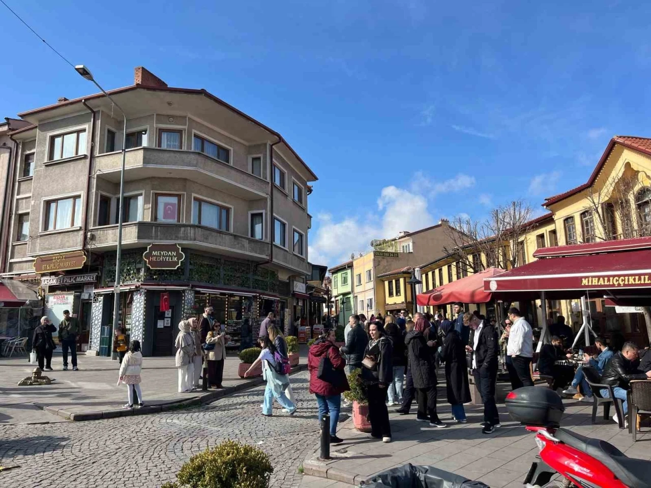 Ramazan Bayramı tatilinin ikinci gününde Eskişehir’in Tarihi Odunpazarı Evleri Bölgesi’nde turist yoğunluğu devam etti. Şehir dışından gelen ziyaretçiler, tarihi bölgede kente özgü lezzetleri tadıp hediyelik eşya alışverişi yaptı.