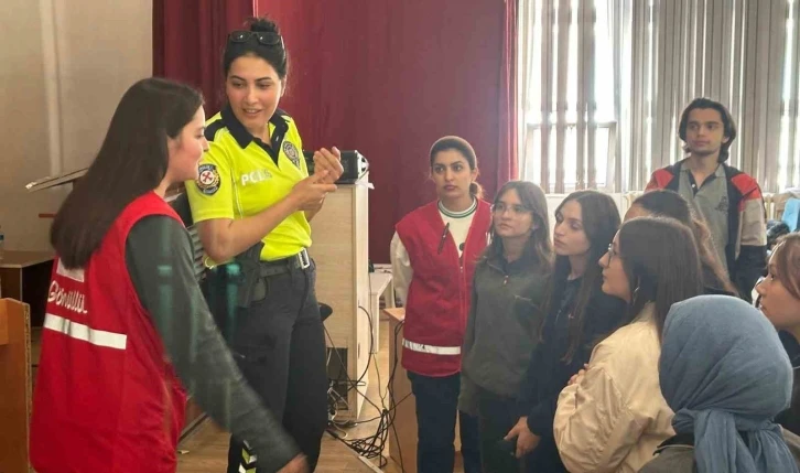 Polisler “Trafikte dikkatli olmak ve kurallara uymak, hepimizin sorumluluğudur” diyerek öğrencileri uyardı.