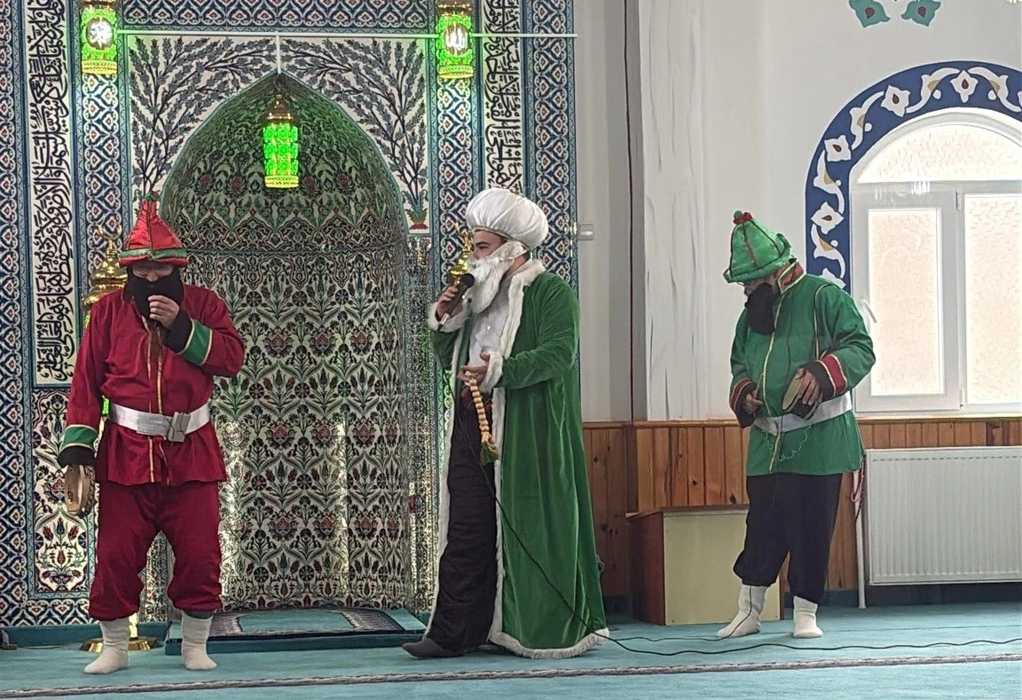 İmam Hatip Lisesi konferans salonundaki ortaokulu öğrencilerine yönelik gerçekleşen Hacivat, Karagöz ve Nasrettin Hoca gösterisinin açılışında din görevlileri Muhammed Ali Aksoy ve Hasan Ali Yılmaz tarafından Kur’an-ı Kerim okundu.