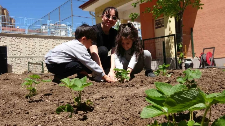 Oluşturdukları tarım alanında ilk olarak öğrencileriyle çilek ekimi yaptıklarını ifade eden Koç, “Eğitim öğretim yılı bitmeden şu an da çilek yetişebildiği için bahçemize çilek ekimiyle bu etkinliğe başladık. Okul zamanı yetişebilecek sebzelerimiz oluyor, mevsimine göre domates, biber, salatalık gibi ürünleri öğrencilerimizle ekeceğiz. Her sınıfımız için tarla alanımızda ayrı ayrı bölümler oluşturacağız, öğretmenlerimizle birlikte bu faaliyeti gerçekleştirebilecekler. Bahçemize ayrıca tamamen doğal bir şekilde ahşaptan etkinlik masası yaptık. Bu masamızı da öğrencilerimiz, havaların iyi olduğu her anda etkinlik alanı olarak kullanabilecekler” dedi.