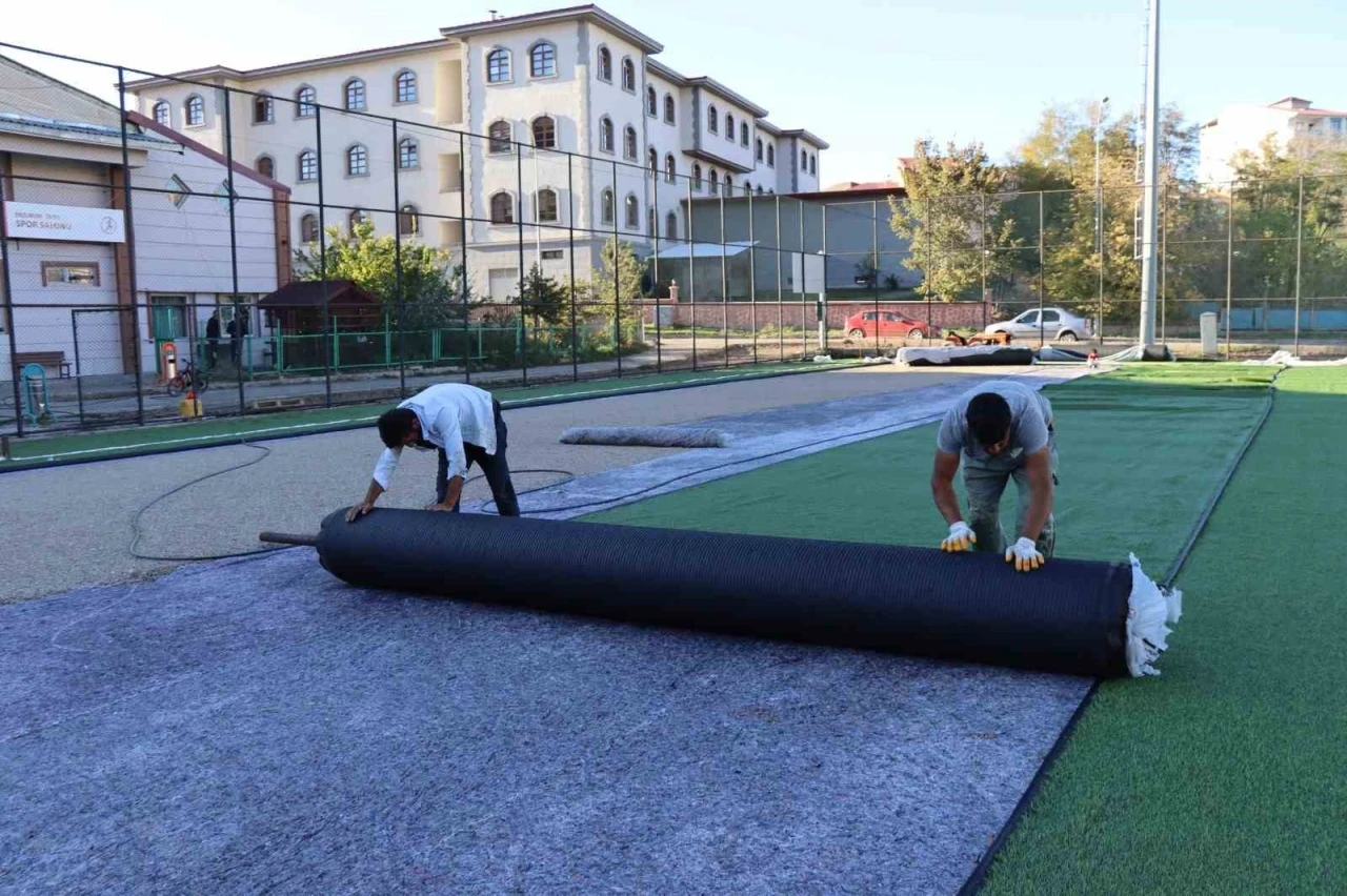 Erzurum’un Oltu İlçe Stadyumu suni çimleri yenileniyor.