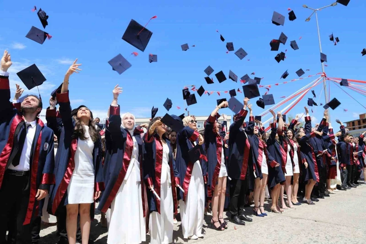 Mezun olan öğrencilerin diploma takdimi sonrasında Fakülte Birincisi Nisanur Çelik, okul yaş kütüğüne ismini çaktı. Son olarak tören alanında toplanan mezunlar, Prof. Dr. Keçeligil eşliğinde mezuniyet andını okuyarak keplerini havaya fırlattı.