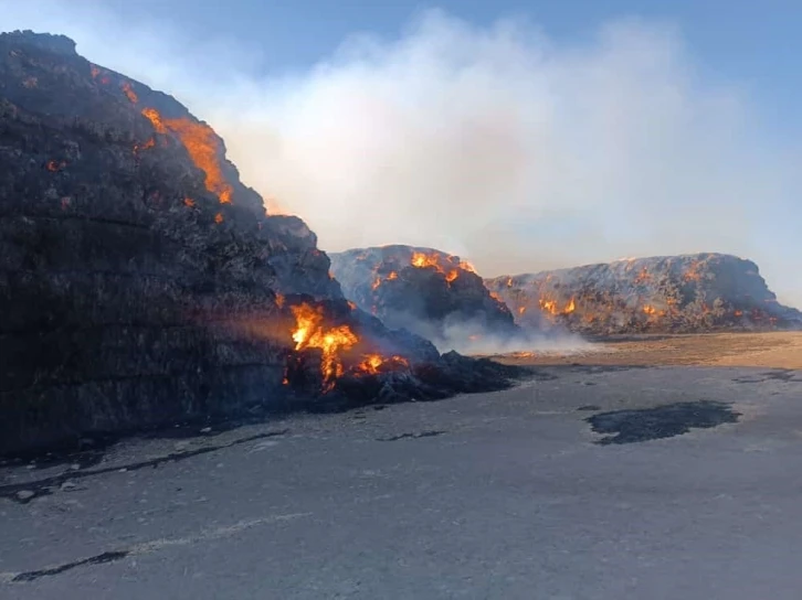 Yangında yüz binlerce balyadan oluşan 65 bin ton samanın kül olduğu öğrenildi.