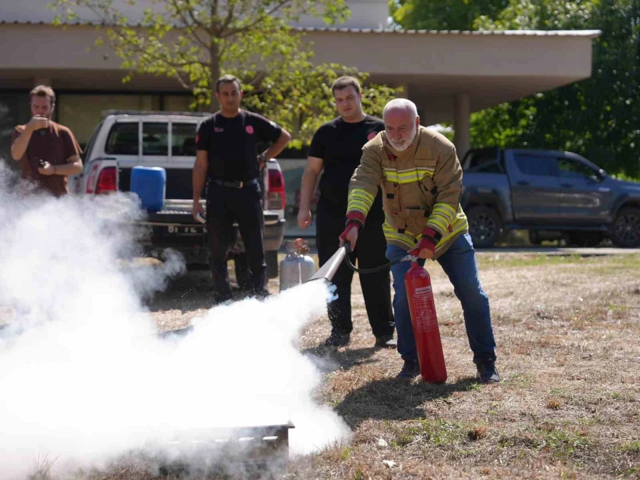 Bilgilendirmelerin ardından ise çalışanlar yangın tüpleriyle yangına müdahalede bulunarak bilgilerini pekiştirdi.