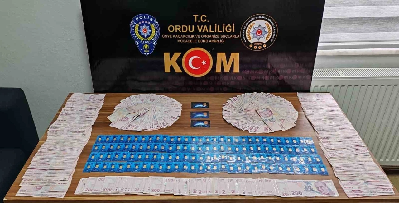 İl Emniyet Müdürlüğü Kaçakçılık ve Organize Suçlarla Mücadele Şube Müdürlüğü ekipleri, sahte altın kaçakçılığına yönelik çalışma başlattı. Çalışmalar sonucu Ünye ilçesinde yakalanan T.G. isimli şüpheli şahsa yönelik yapılan üst ve çanta aramasında 123 adet 1gram sahte olduğu değerlendirilen altın, 3 adet 5 gram sahte olduğu değerlendirilen altın, 118 bin 500 TL nakit para ele geçirildi.