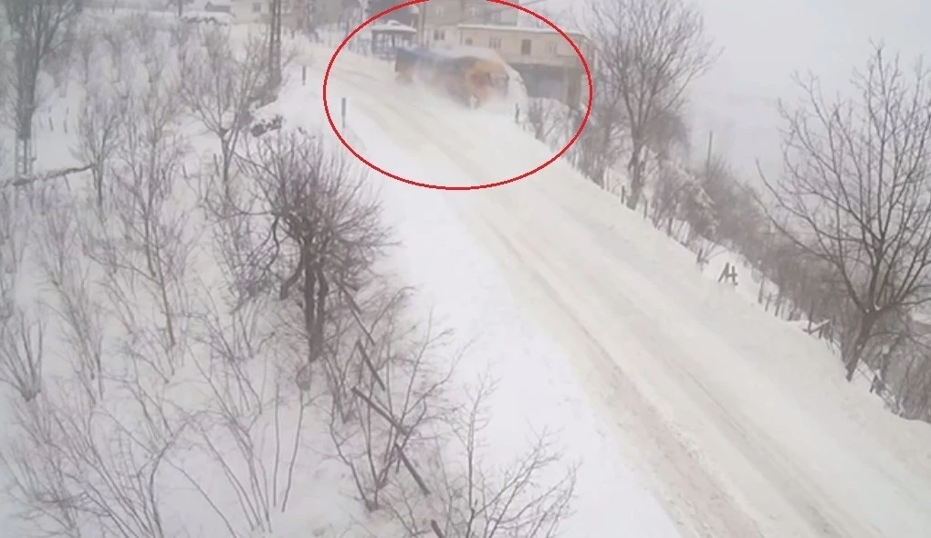 Ordu’nun Korgan ilçesinde yem yüklü tır, kar nedeniyle kayganlaşan yoldan çıkarak, yaklaşık 600 metrelik uçuruma yuvarlandı. Tırdan atlayan sürücü kazadan yaralı kurtulurken, kaza anı güvenlik kamerasına yansıdı.
