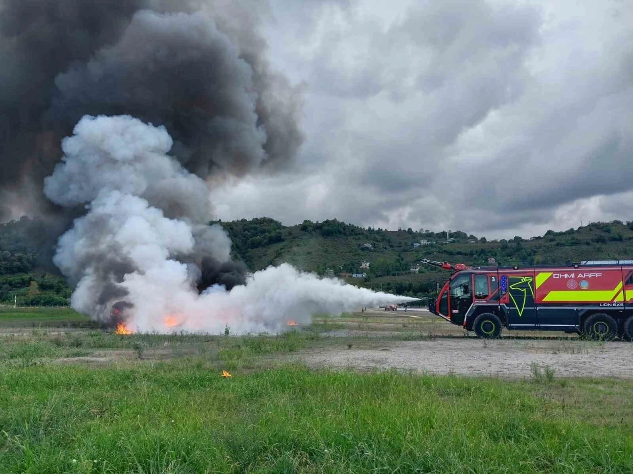 Devlet Hava Meydanları İşletmesi Genel Müdürlüğü (DHMİ) Uçak Kaza Kırım Kurtarma ve Yangınla Mücadele Yönergesi kapsamında yapılan tatbikatta, senaryo gereği sert iniş yapan yolcu uçağı ikiye bölündü. Uçağın bir kısmında çıkan yangına Havalimanı ARFF ekipleri kısa sürede müdahale etti.