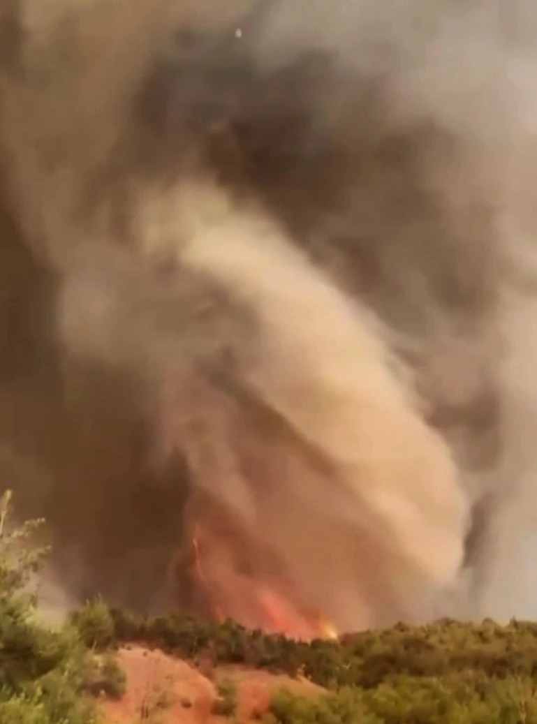 Sakarya’nın Geyve ilçesinde dün başlayan ve rüzgarın etkisiyle Bilecik’e kadar yayılan orman yangınıyla mücadele sürüyor. Yangının boyutunu en çarpıcı şekilde gözler önüne seren görüntü ise Orman Genel Müdürü Bekir Karacabey’in sosyal medya paylaşımı oldu. Karacabey’in paylaştığı görüntülerde, alevlerin dönerek gökyüzüne doğru yükseldiği, adeta bir ‘yangın hortumu’ oluşturduğu anlar yer aldı. Karacabey o anları, "Hiç acıkmayan, yorulmayan, dinlenmeyen bir düşmanla karşı karşıyayız. Kahramanlarımızın ise bu düşmana karşı en büyük motivasyonu yeşil vatana olan sevdaları. Sizlerin yürekten desteği, kahramanlarımızın ise cesareti ile bu düşmanı alt edecek, birlikte başaracağız" ifadeleri ile paylaştı.