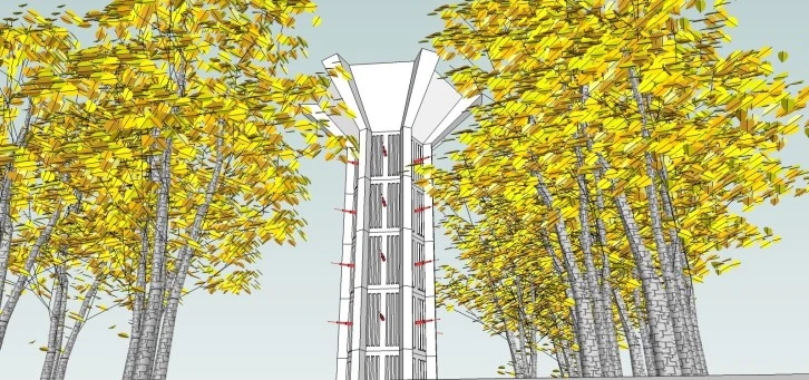 50 metre yüksekliğe ulaşabilen ve 250 tona kadar su kapasitesine sahip olan kule, içindeki akıllı alev-duman sensörleri sayesinde yangınları anında algılayarak 200 metreye kadar su püskürtebilecek. Prefabrike betondan üretilen kule, bin derece sıcaklığa dayanıklı ve orman içine rahatlıkla kurulabiliyor. Su, yer altı kaynağından çekilerek haznede biriktirilecek. Kule, 2 dakikada yaklaşık 30 dönümlük (200 metre) alana 50 ton su boşaltma kapasitesine sahip.