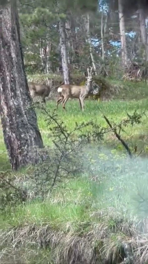 Görüntülerde, karacaların ağaçlar arasında koşarak gözden kaybolduğu anlar yer aldı.