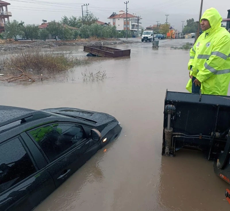 Ortaca’da şiddetli yağış sonrası araçlar su altında kaldı